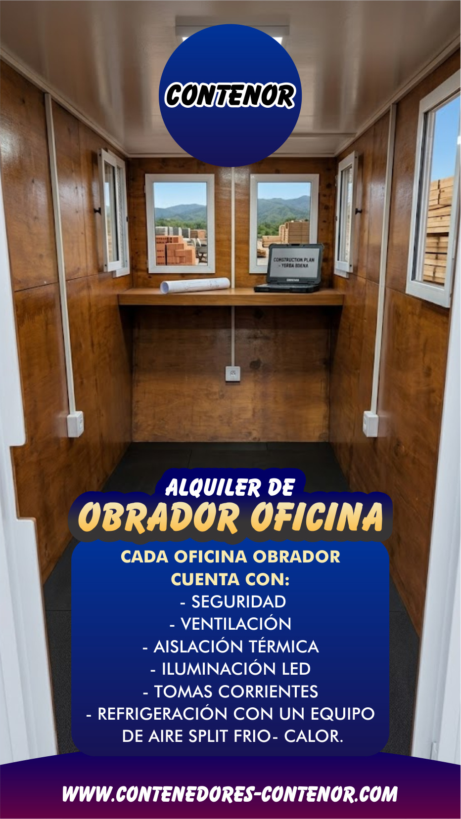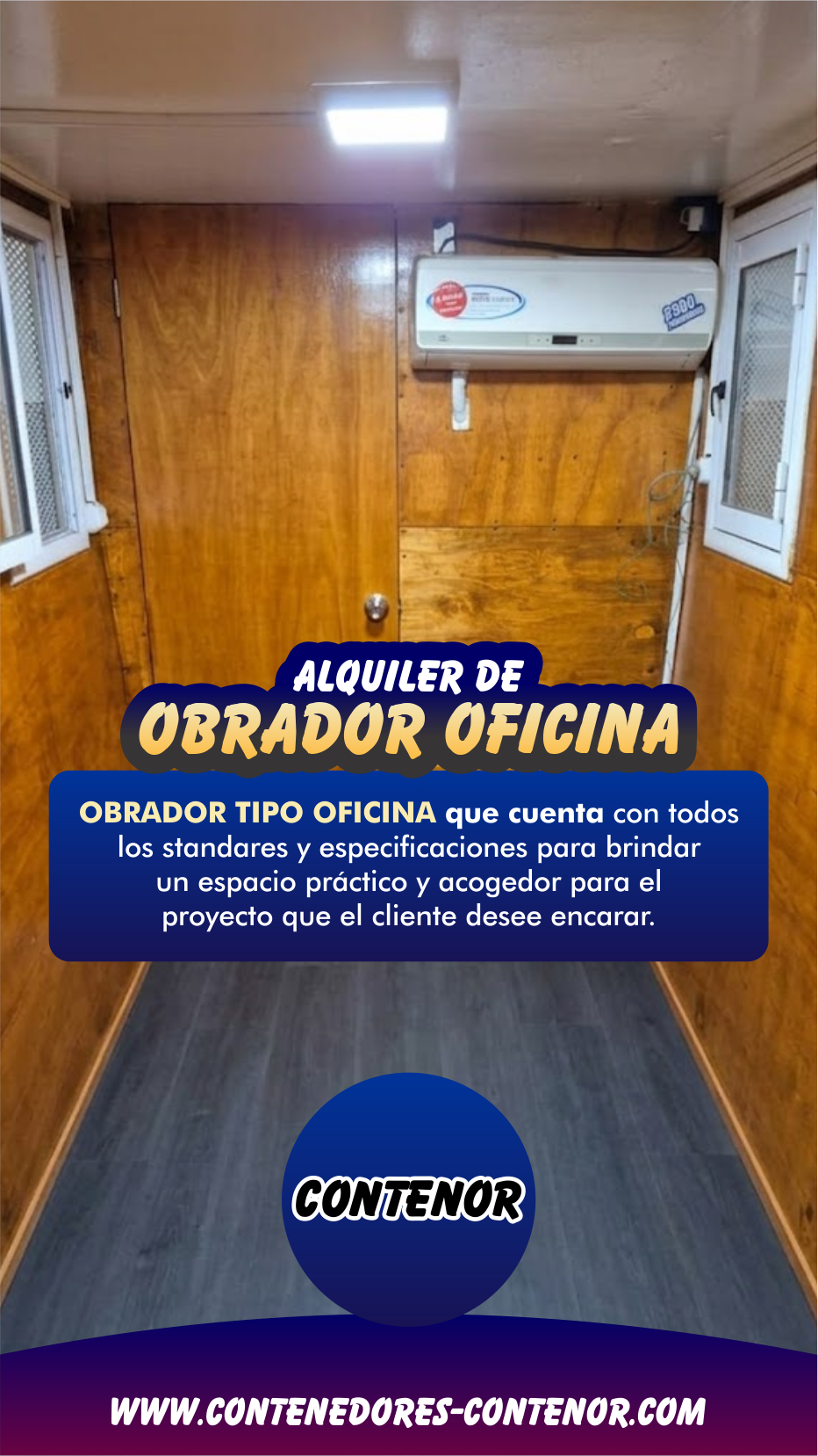 Tu centro de mando en la obra. Llevá el confort adonde vayas: aire frío/calor, luz LED, aislación térmica y tomas eléctricas listas para usar.